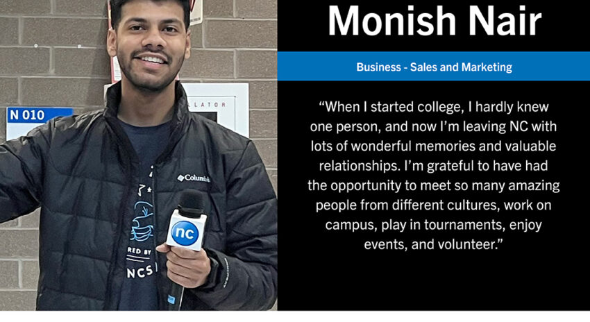International student Monish Nair came to NC to study in the Business – Sales and Marketing program, ready to gain a well-rounded college experience and engage in Canadian culture. As he looks forward to graduation, Nair reflects on what drew him to NC, his favourite memories, and what he hopes to accomplish after college.
